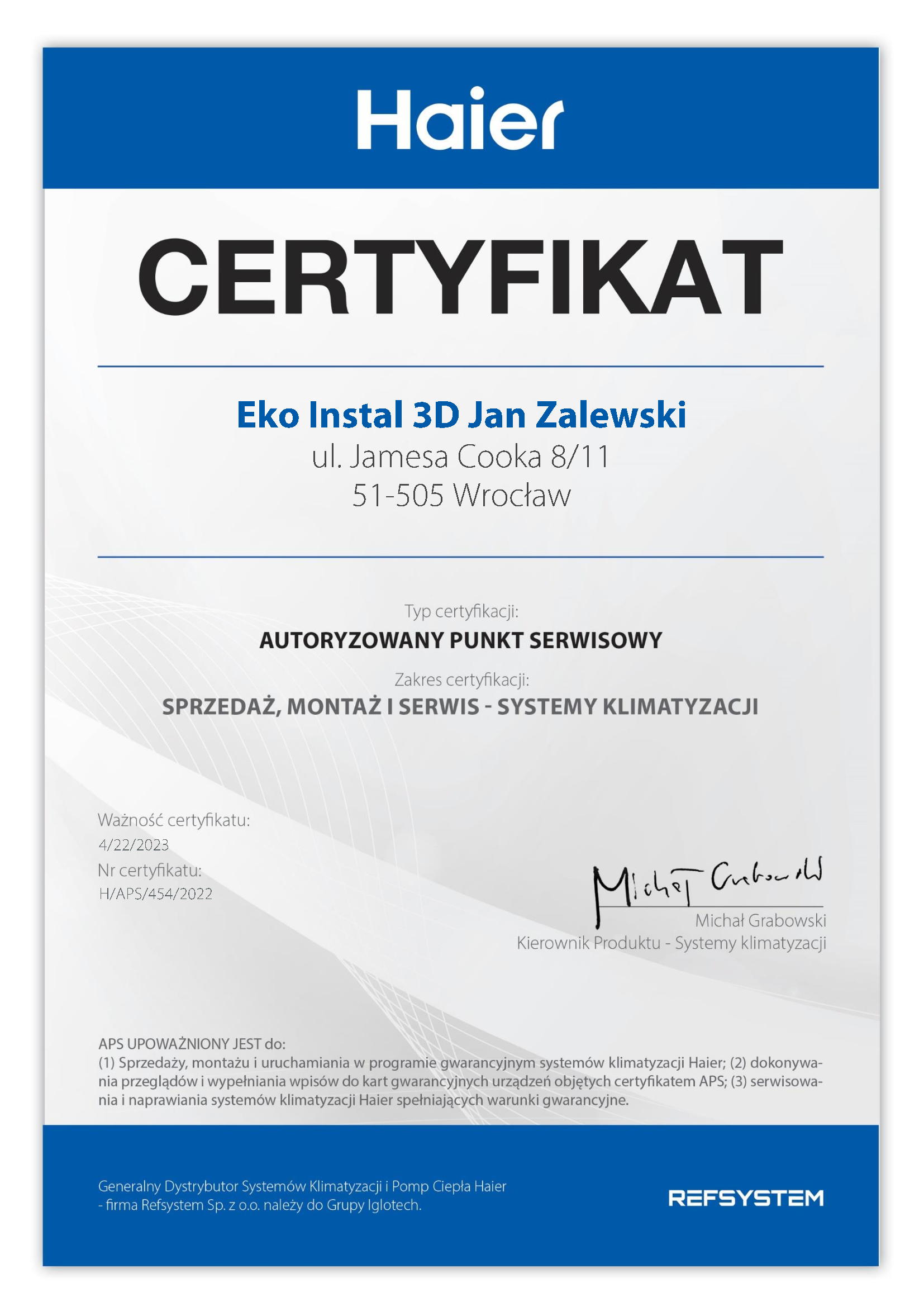 Po wykonanej wycenie oferujemy natychmiastowe podpisanie umowy.